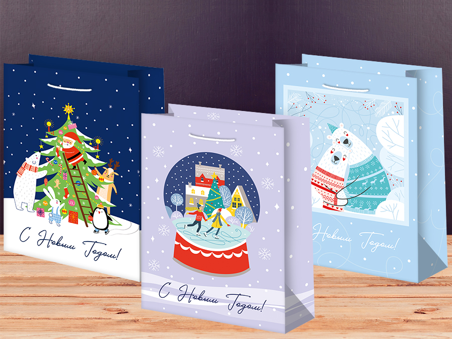 Пакет подарочный M вертикальный, С Новым годом, МИКС, 22*31*10 см (Д*В*Ш), 1 шт.