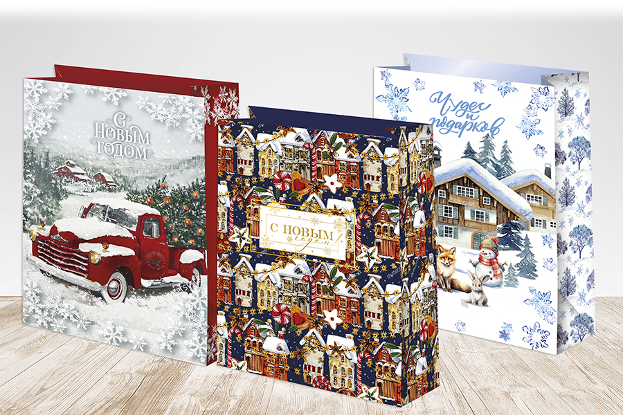 Пакет подарочный M вертикальный, С Новым годом, Снежная деревня, МИКС, 22*31*10 см (Д*В*Ш), 1 шт.