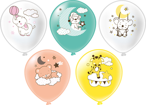 БК 12''/30 см, Милые зверята, Шелк, 1ст. 2цв. 5 дизайнов, 25 шт.