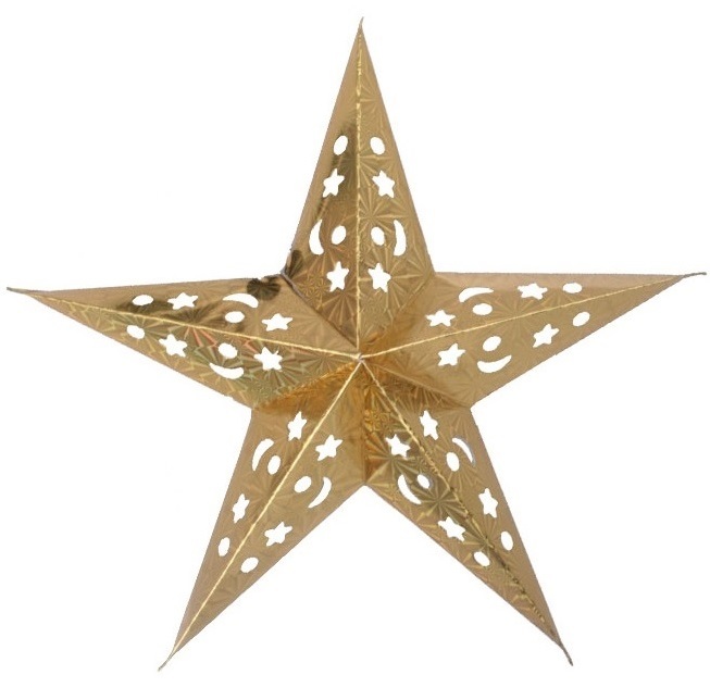Бумажная звезда, 45 см, 5-конечная, голографическая, Золото