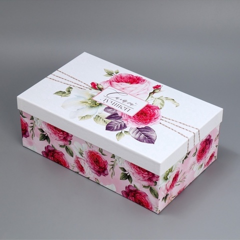 Коробка одиночная, Прямоугольник, «Цветы», 22*14*8.5 см, 1 шт.