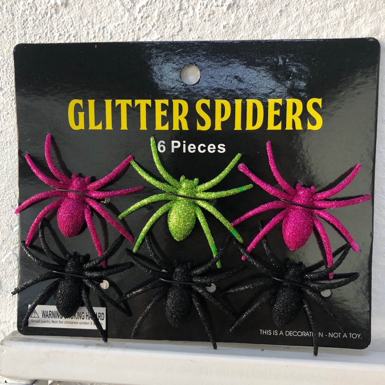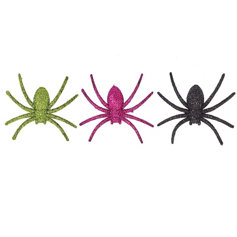 Декоративное украшение, Паук, пластик глиттер, Ассорти, 8 см, 6 шт.
