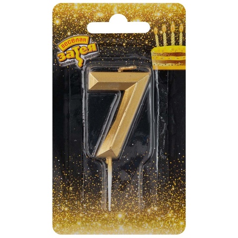 Свеча-цифра Диамант Золото "7", 4,5 см, 1 шт.