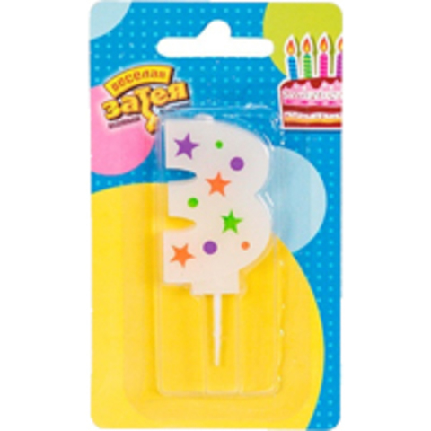 Свеча-цифра Звезды "3", 5 см, 1 шт.
