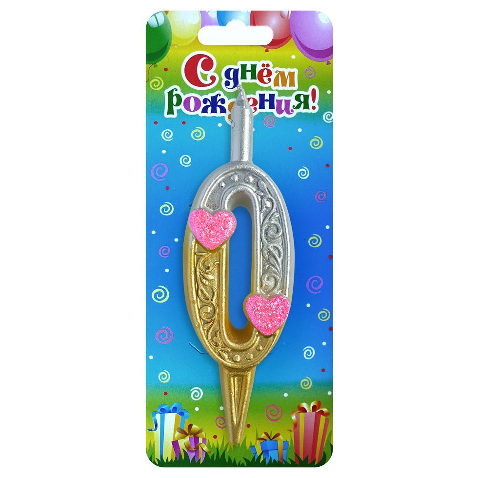 Свеча-цифра тортовая "Сердечки" 0, 12 см, 1 шт.
