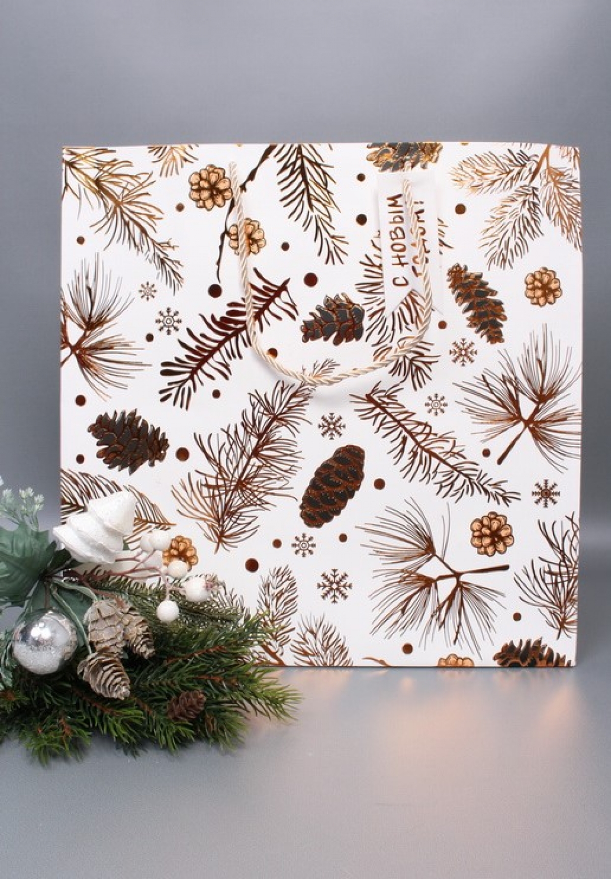 Пакет подарочный L квадратный, НГ Ёлки, 37*37*18 см (Д*В*Ш), 1 шт.