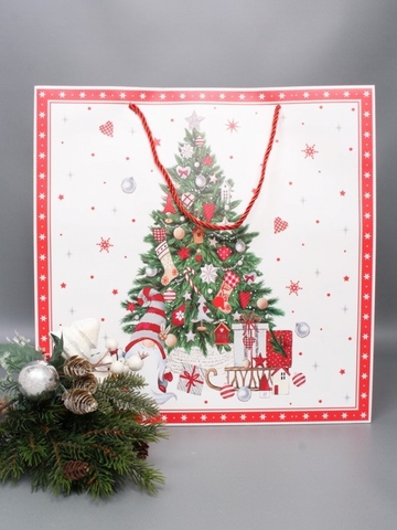 Пакет подарочный L квадратный, НГ Ёлки, 38*38*20 см (Д*В*Ш), 1 шт.