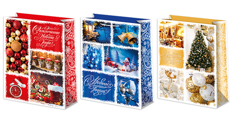 Пакет подарочный L вертикальный, "С Новым годом", МИКС, 33*45*10 см (Д*В*Ш), 1 шт.