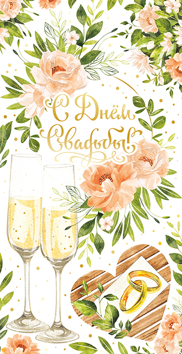 Открытка-конверт, С днем свадьбы!, 8,3*16,8 см, 5 шт.