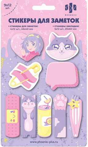 Клейкая закладка бумажная 46х40/20х60мм 108л "Коты" цвет ассорти, фигурная