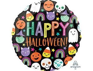 А 18"/45 см, Круг, Хэллоуин, Счастливые Лица, 1 шт. (В упаковке)