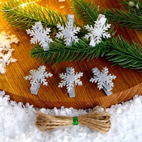 Прищепки декоративные, «Снежинки», Серебро, 6 шт.