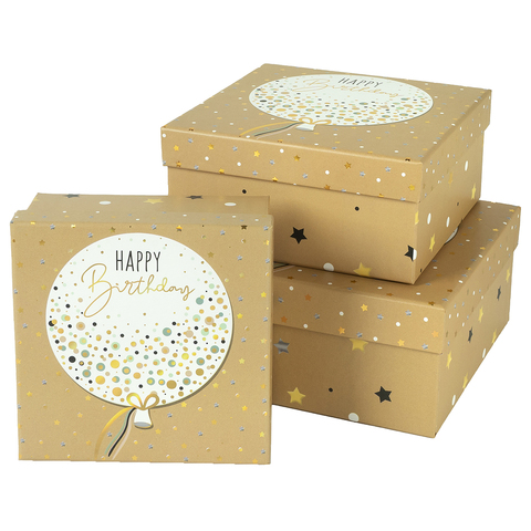 Коробка одиночная, Квадрат, С Днем Рождения (воздушный шар), Бежевый, 15,5*15,5*7,5 см, 1 шт.