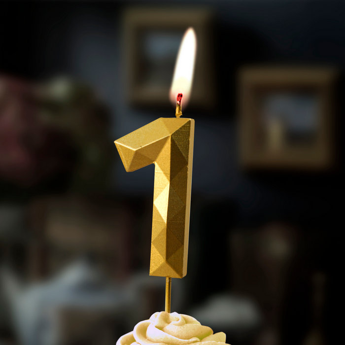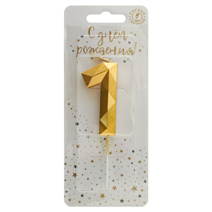 Свеча-цифра "‎Многогранник" Золото, на шпажке "1", 4 см, 1 шт.
