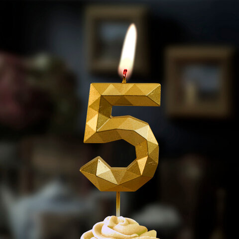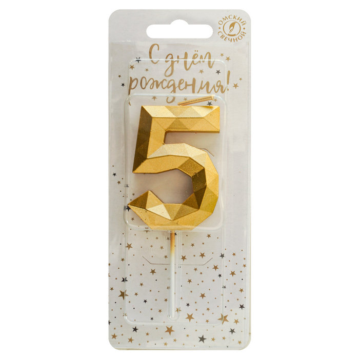 Свеча-цифра "‎Многогранник" Золото, на шпажке "5", 4 см, 1 шт.