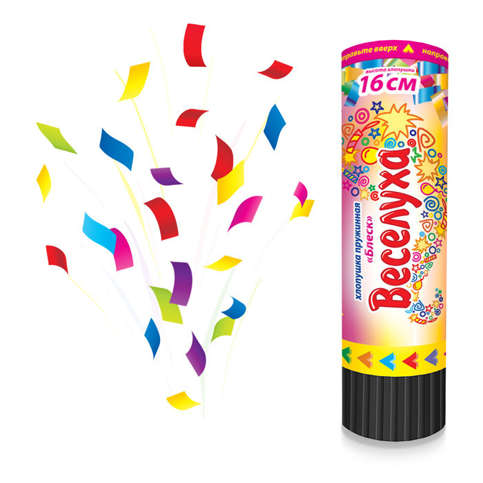 Перед использованием встряхните хлопушку. Внимательно изучите инструкцию на этикетке.
