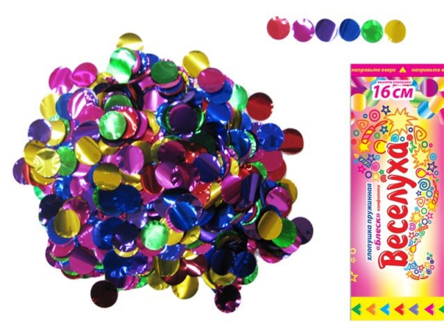 Хлопушка пружинная Блеск конфетти украсит любое торжество – свадьбу, юбилей, корпоративный или детский праздник. Фонтан из разноцветных конфетти высотой 2-3 метра поможет придать празднику сказочную атмосферу.