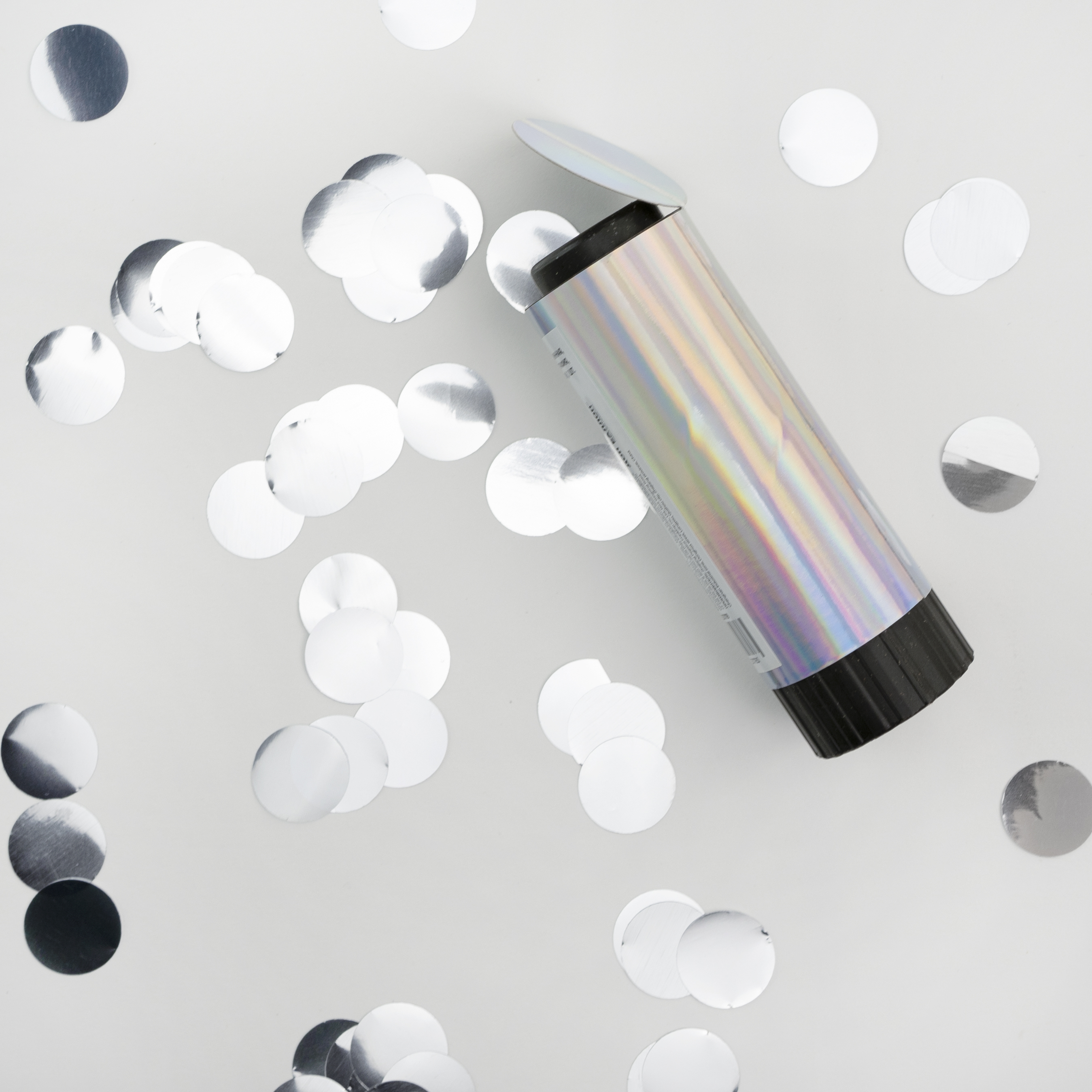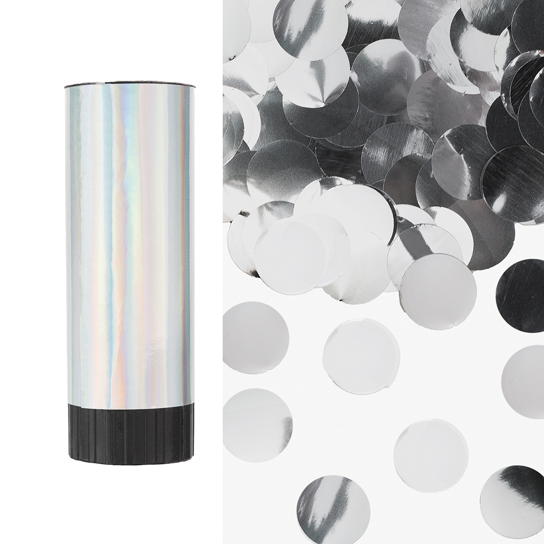 Наполнитель – серебряные круглые конфетти. Перед использованием встряхните хлопушку.