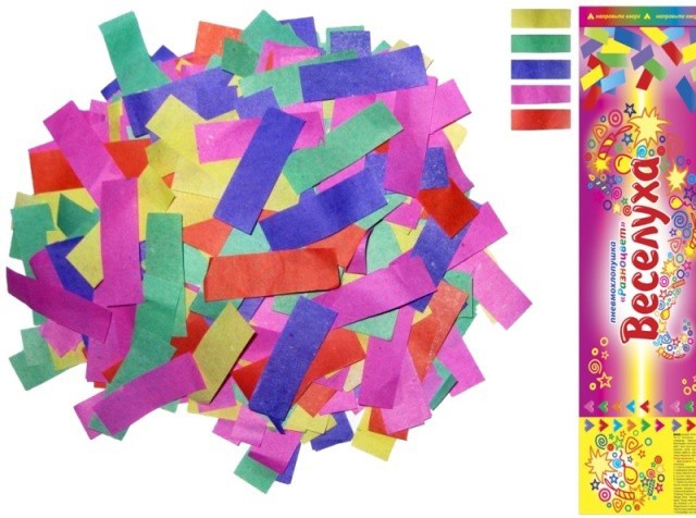 Пневмохлопушка украсит любое торжество – свадьбу, юбилей, корпоративный или детский праздник. Фонтан из разноцветных конфетти высотой 7-8 метров поможет придать празднику сказочную атмосферу.