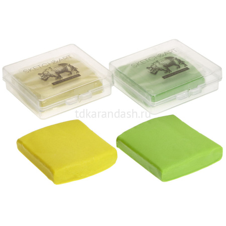 Ластик-клячка желтый/зеленый "Sketch&Art" в пластиковом футляре, 1 шт.