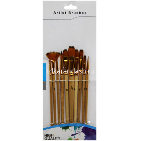 Набор кистей синтетика 10шт. (плоская № 1/2,4,6,8,10, круглая №2,4,8, овальная №10, веерная №3/0)