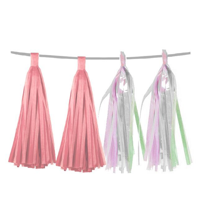 Гирлянда Тассел (помпон кисточка), Нежно-розовый/Нежно-розовый перламутр, 35*12 см, 20 листов.