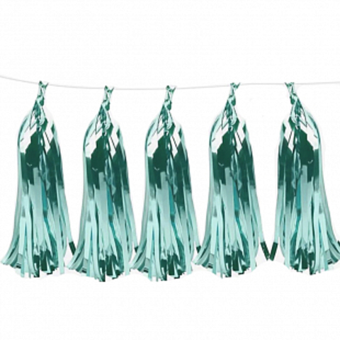 Гирлянда Тассел (помпон кисточка) фольга, Морская волна, 35*12 см, 10 листов.