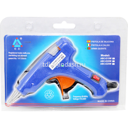 Пистолет клеевой электрический (20Вт) 13х11х2см диаметр 0,7см, металл. наконечник, 1 шт.