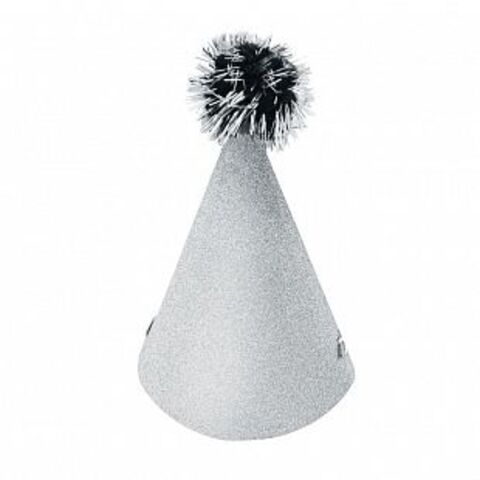 Колпаки с глиттером, с помпоном, Серебро, 12 см, 6 шт.
