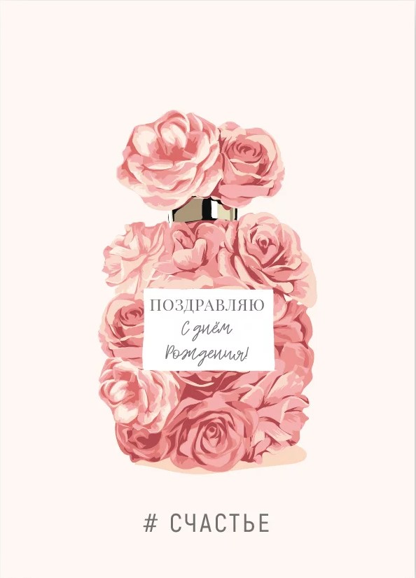 Мини-открытка, Поздравляю с Днем рождения, Флакон духов, 5*7 см, 10 шт.