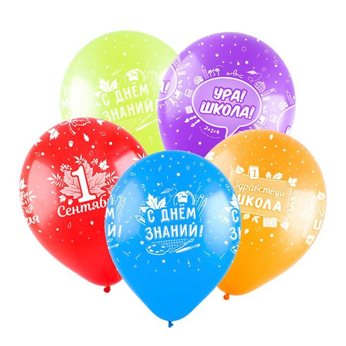 К 12"/30 см, День знаний, Ассорти Пастель, 5 ст., 25 шт.