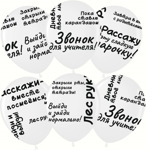МЛ 12''/30 см, Школьные цитаты, Белый, пастель, 5 ст, 25 шт.