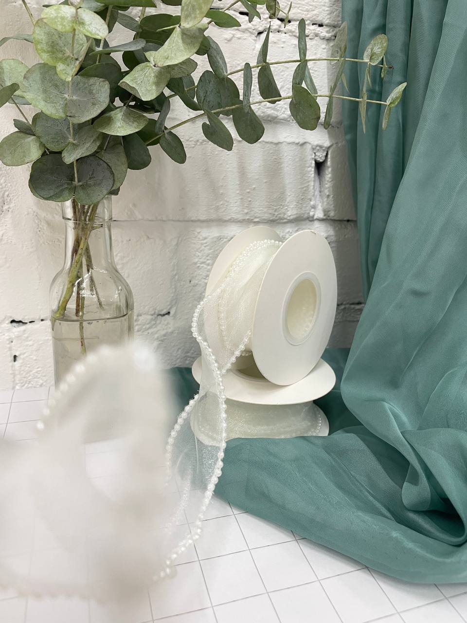 Лента органза с жемчугом (4см*3,6 м), Белый