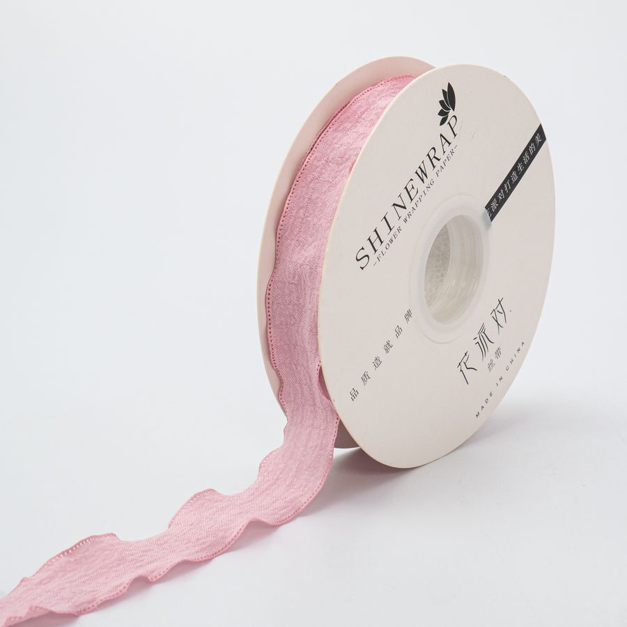 Лента полиэстер жатая с волнистым краем (2,5 см*9,14м), Нежно-розовый