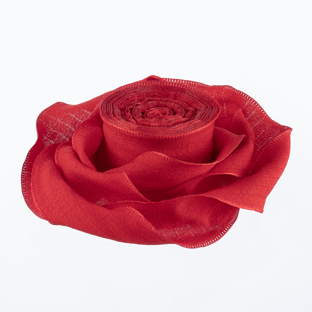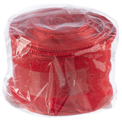 Лента полиэстер жатая с волнистым краем (4,0см*9,14м), Красный, 1 шт.