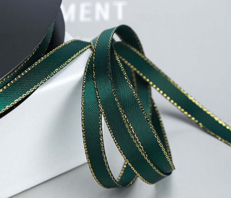 Лента Атласная с золотой нитью (2,5см*22,85м), Изумруд
