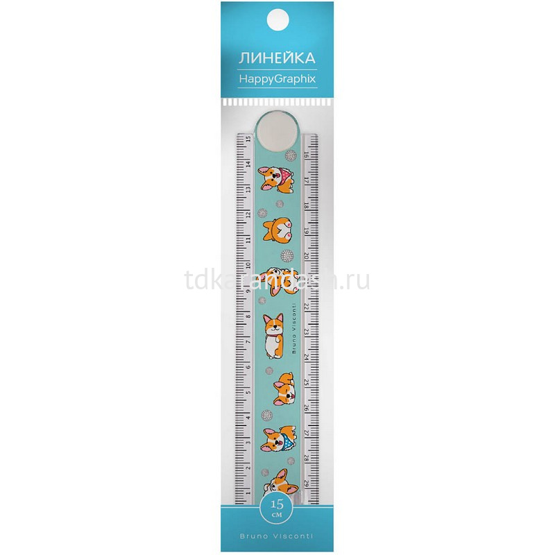 Линейка 15-30см "HappyGraphix. Веселые корги" складная, с трафаретом, пластик
