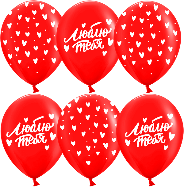 К 12''/30 см, Люблю тебя (множество сердец), Красный, пастель, 5 ст., 25 шт.