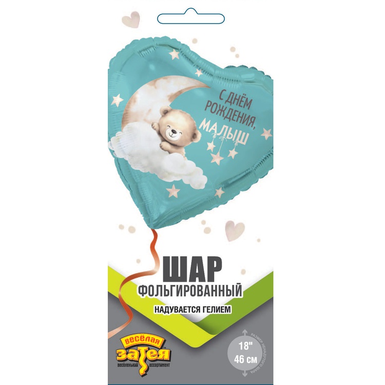 К 18"/46 см, Сердце, С ДР МАЛЫШ, Мишка на облаке, 1 шт. (В упаковке)