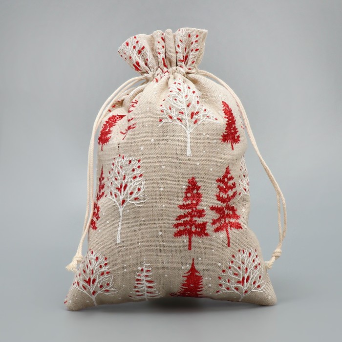 Мешочек подарочный холщовый, Новогодний лес, 16*24 см, 1 шт.