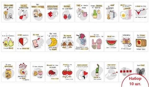 Мини-открытка, Между нами любовь, МИКС, 10*7 см, 10 шт.