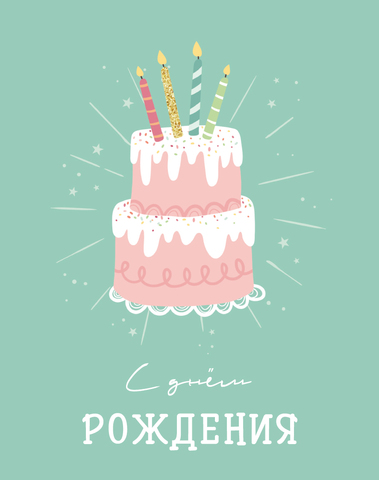Мини-открытка, С Днем Рождения (торт), 7,5*10 см, 10 шт.
