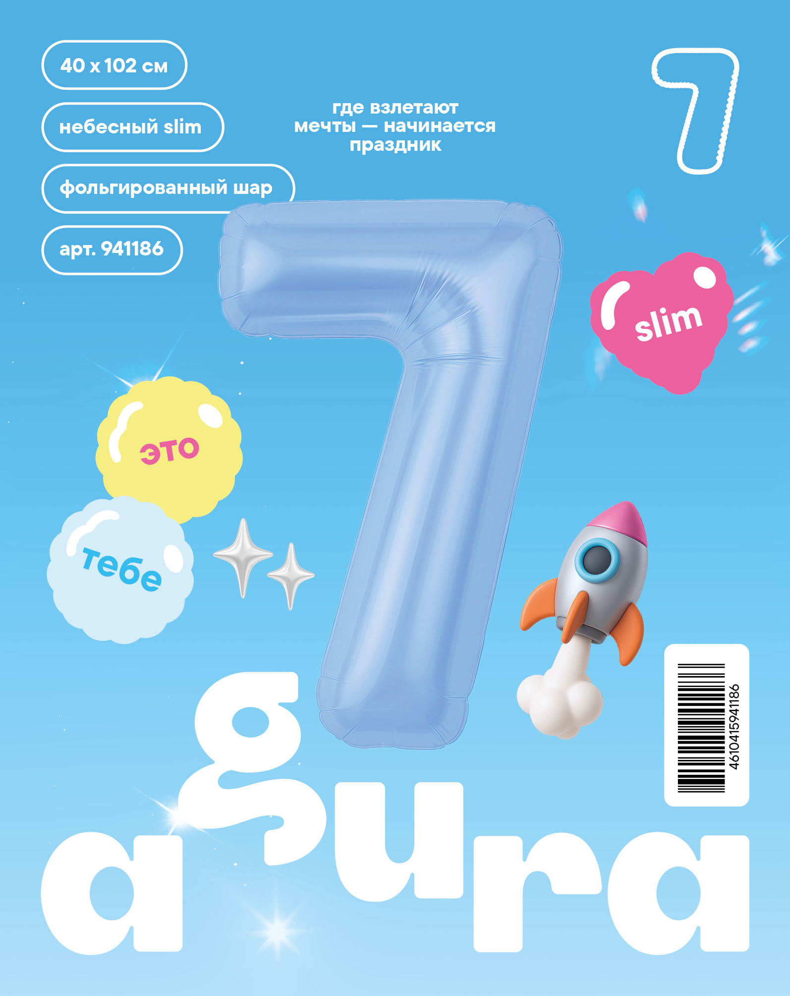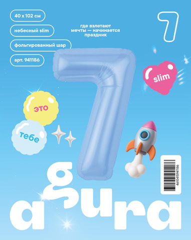 Аг 40''/102 см, Цифра Slim Небесный "7" (в упаковке)