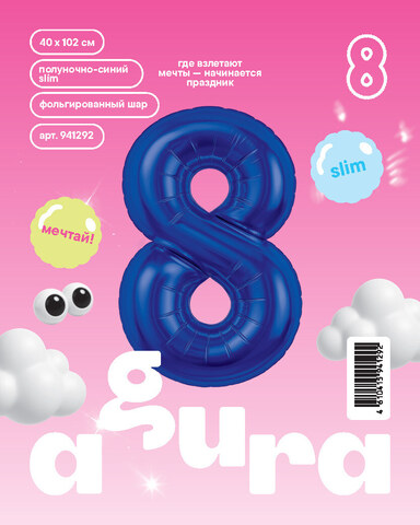 Аг 40''/102 см, Цифра Slim Полуночно-синий "8" (в упаковке)