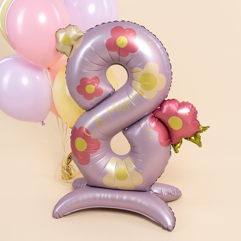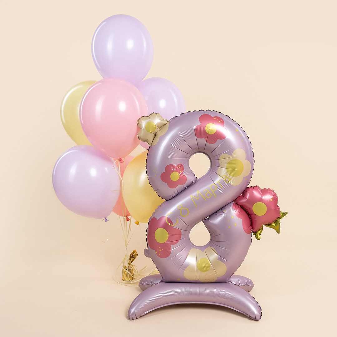 К 40''/102 см, Цифра на подставке, 8 Марта, Нежные цветы, 1 шт. (В упаковке)