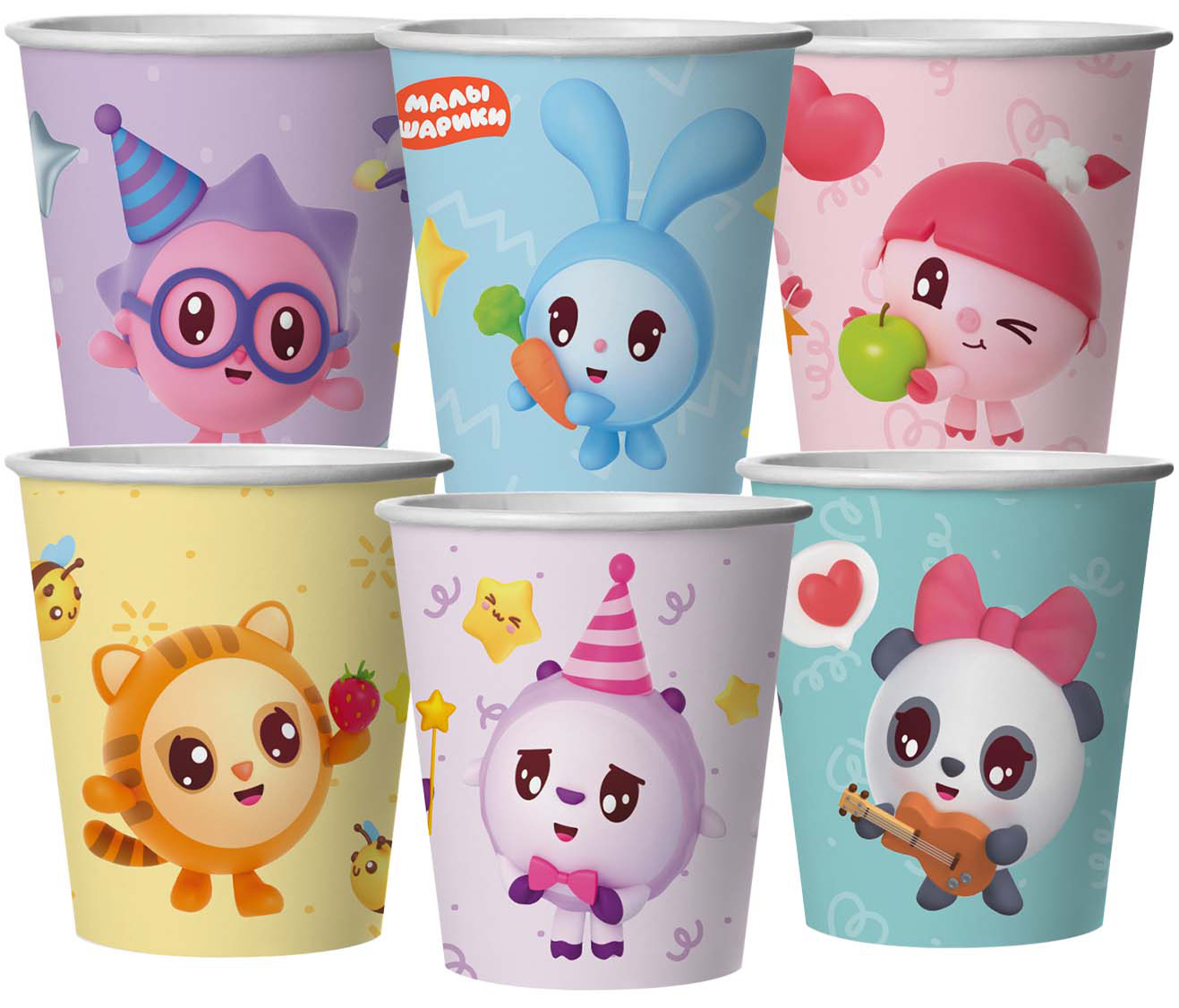 Стаканы, Малышарики, Ассорти, 250 мл, 6 шт.