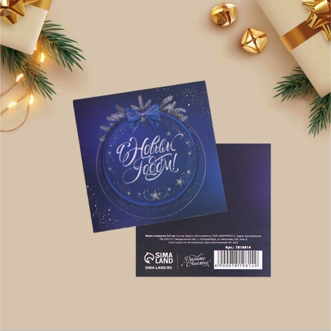 Мини–открытка, С Новым годом, 7*7 см, 10 шт.