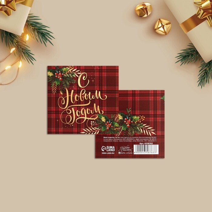 Мини–открытка, С Новым годом, 7*7 см, 10 шт.