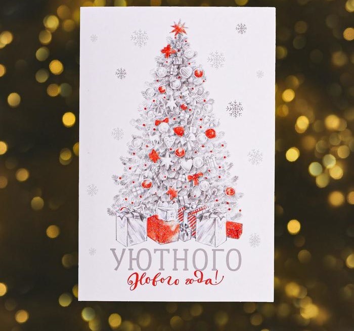 Открытка, Уютного Нового Года, глиттер, 12*18 см.