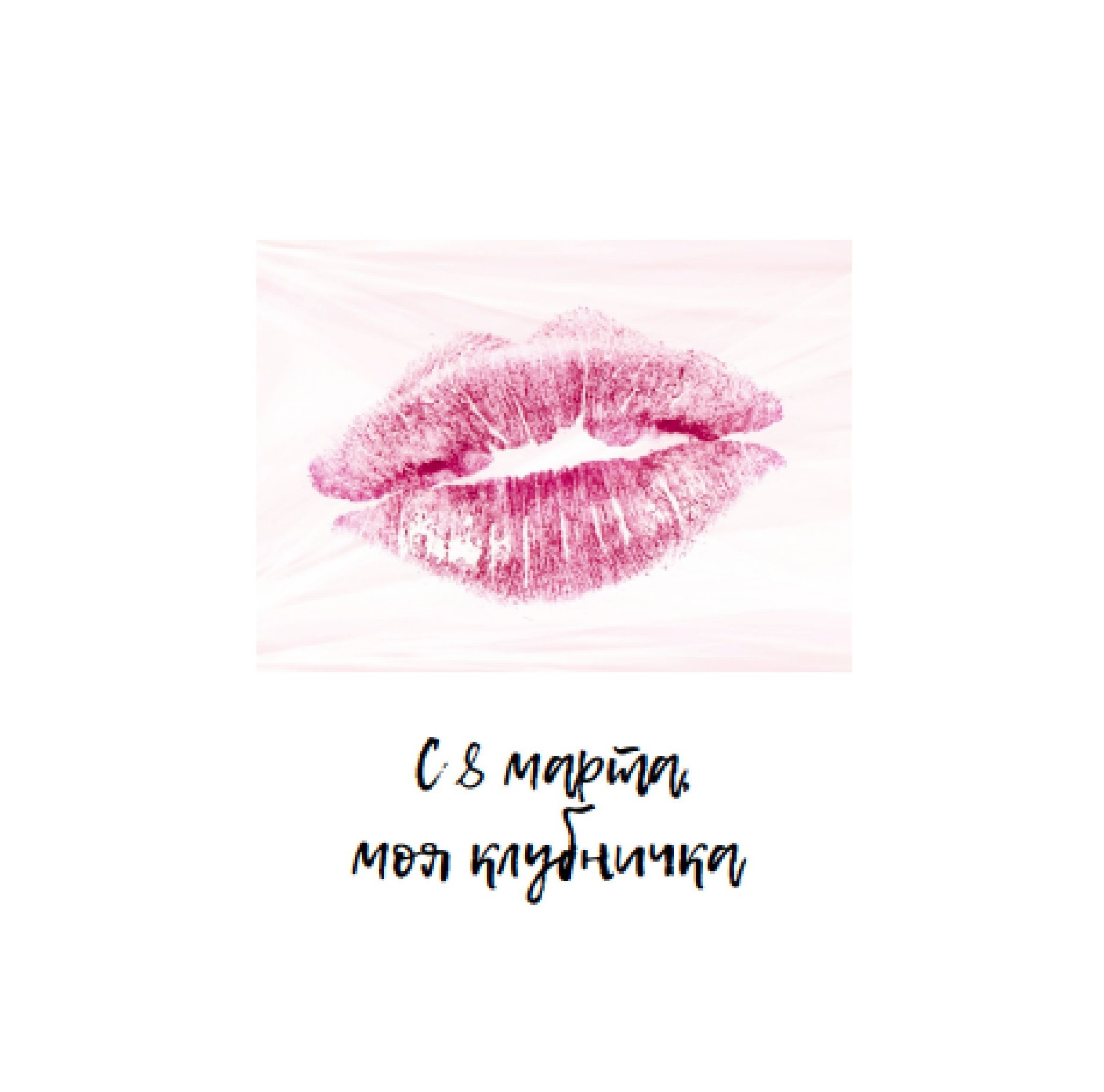 Открытка, "С 8 марта, моя клубничка, Губы", 12,5*12,5 см, 1 шт.